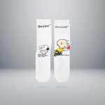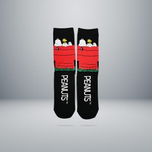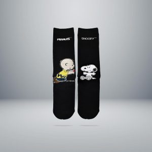 BAOJI x PEANUTS Crew Socks 001 Charlie Brown & Snoopy สีดำ