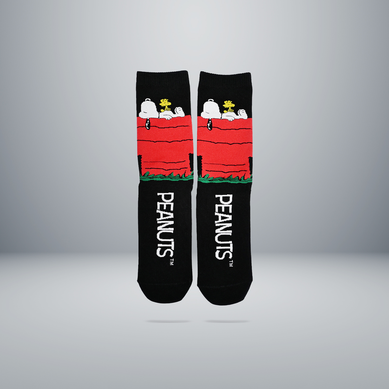 BAOJI x PEANUTS Crew Socks 003 Snoopy on Doghouse สีดำ