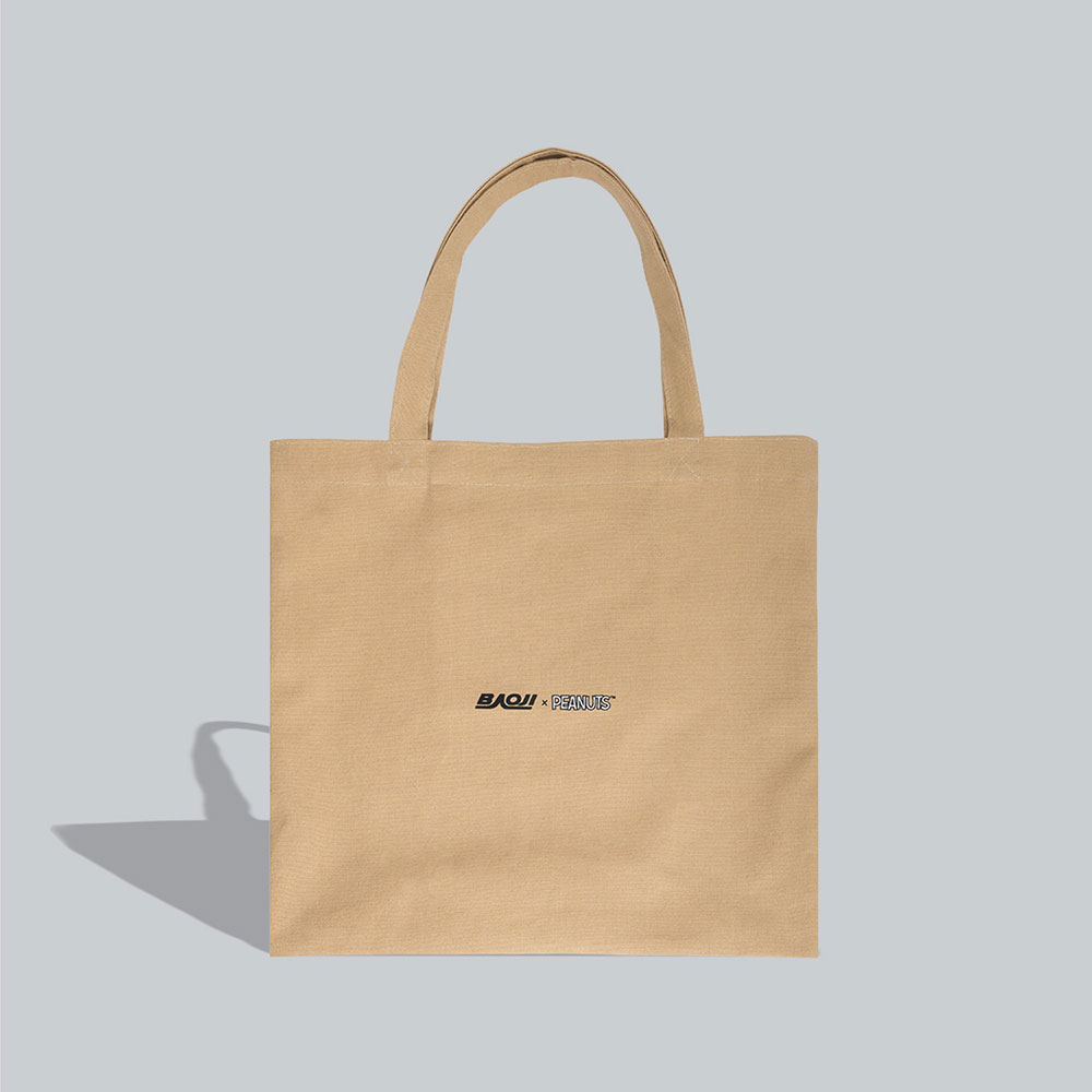 BAGSBAOJI x PEANUTS Totebag 008 Snoppy’s Strength Club สีคอฟฟี่