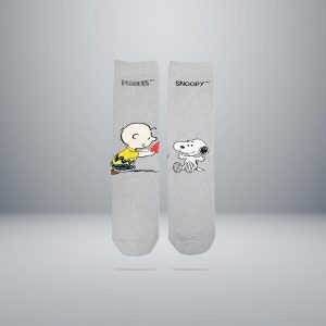 BAOJI x PEANUTS Crew Socks 001 Charlie Brown & Snoopy สีเทา